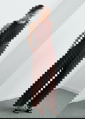 Drape Detailed High Neck Jumpsuit With Accent Belt