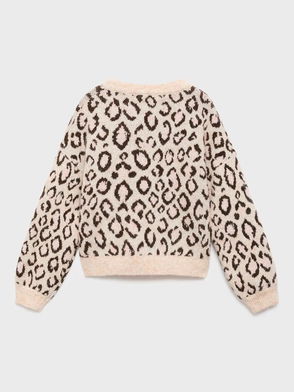 Kids' Meow Leopard Print Jumper, Beige/Multi