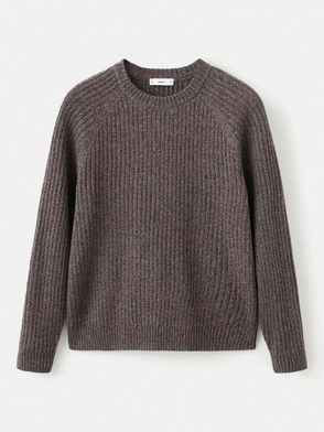 Ribbed Crew Neck Jumper, Chocolate