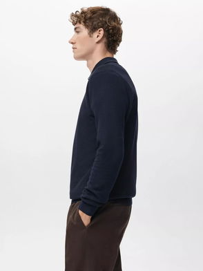 Cotton Mix Revere Collar Knitted Polo Top In Navy