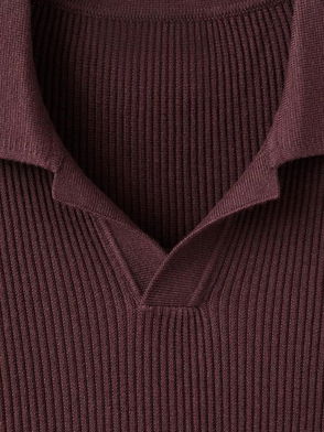 Antigua Cotton Blend Rib Knit Polo Jumper, Dark Red
