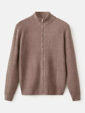 Madeirap Zip Neck Cotton Rib Knit Jumper, Dark Brown