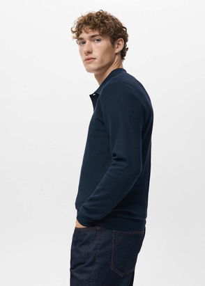 Madeirap Zip Neck Cotton Rib Knit Jumper, Navy