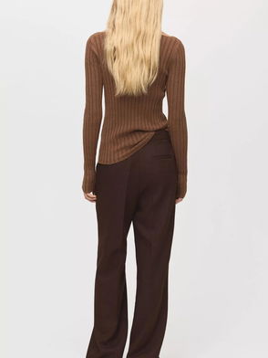 Round Neck Lightweight Jumper In Brown