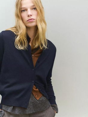 Round Neck Wool Blend Cardigan