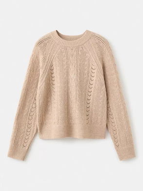 Open Cable Knit Jumper, Camel