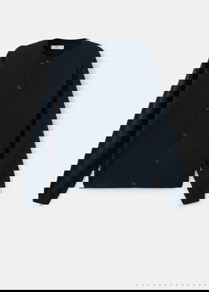 Wool Button Up Long Sleeve Knitted Polo Top In Navy
