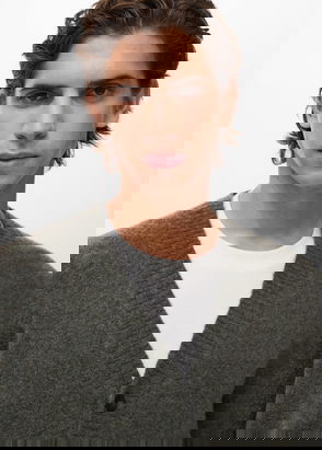 100% Wool Button Up Long Sleeve Knitted Polo Top In Khaki