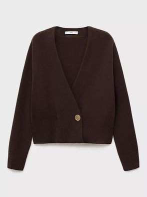 Compact Knit Wrap Waist Cardigan With Gold Button In Brown