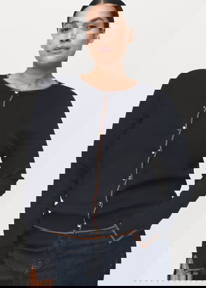 Cotton Mix Long Sleeve Knitted Top In Navy