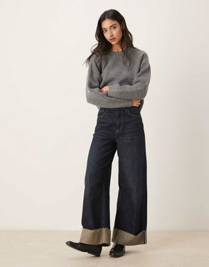 Round Neck Fine Knit Top In Brown And Blue Stripe