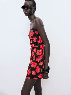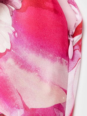 Asymmetric Mesh Midi Dress In Brown And Pink Floral Print