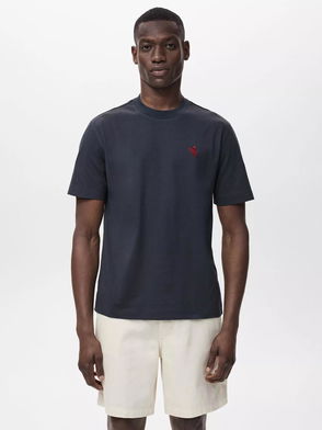 Cotton Regular Fit Short Sleeve Lobster Embroidered T-Shirt, Navy