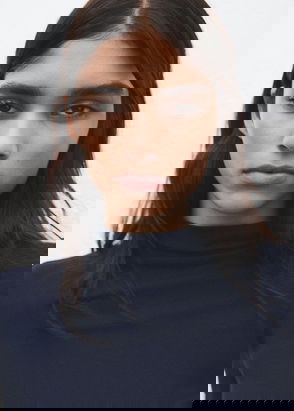 Featuring Kaia Gerber Long Sleeve Draped Back Maxi Dress In Navy