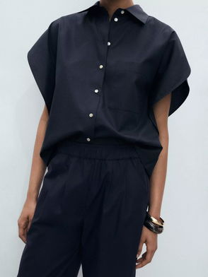 Kids' Pamy Cotton Long Sleeved Blouse, Navy
