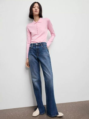 Kids' Bella Cotton High Neck Jumper, Light Pink