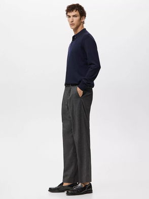 Willys Wool Regular Fit Long Sleeve Polo Shirt, Black