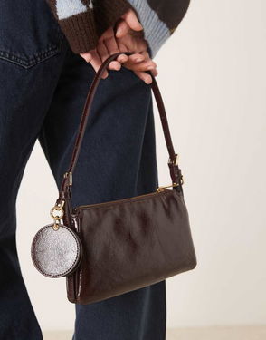 Woven Leather Slouchy Shoulder Bag In Cherry Red