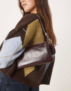Woven Leather Slouchy Shoulder Bag In Cherry Red