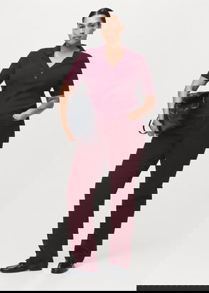 Cotton Mix Ribbed Short Sleeve Polo Shirt In Dark Red