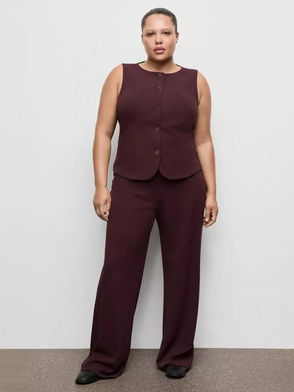 Sculpted Wide Leg Tailored Trousers, Bordeaux