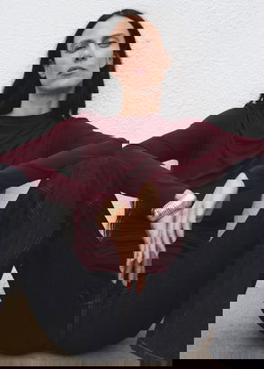 Libra High Neck Wool Rich Knit Top, Dark Red