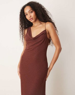 Asymmetric Cowl Neck Maxi Dress With Hotfix In Brown