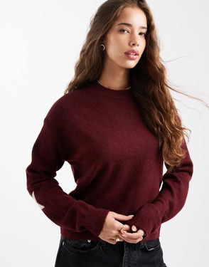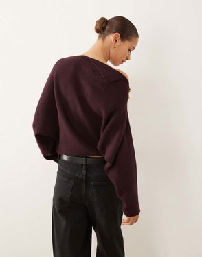Ribbed Slash Neck Lightweight Jumper In Dark Red
