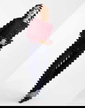 Sweater With Asymmetrical Neck And Jewel Buttons