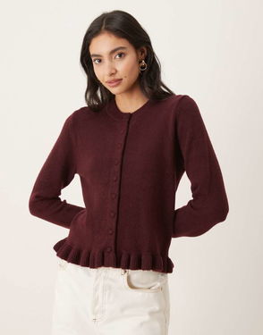 Cardigan With Peplum Hem In Burgundy