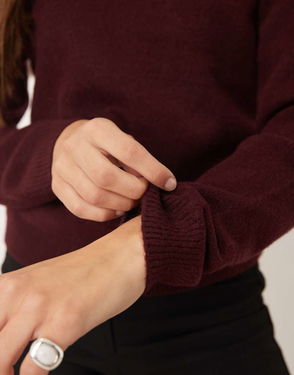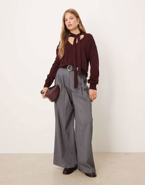 V Neck Knitted Jumper With Scarf Detail In Burgundy