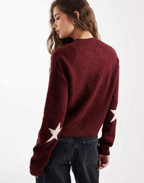Teen Knitted Jumper With Star Detail In Burgundy
