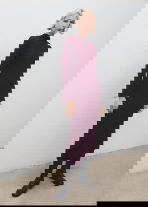 High Neck Compated Knit Midi Dress With Pleat Hem