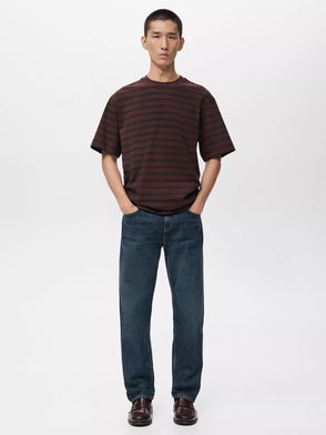 Cotton Regular Fit Short Sleeve Stripe T-Shirt, Dark Red
