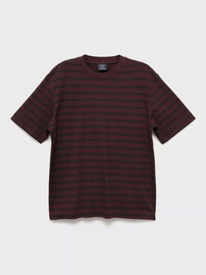 Cotton Regular Fit Short Sleeve Stripe T-Shirt, Dark Red