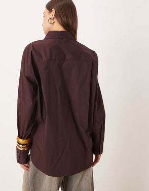 Cotton Mix Structured Shirt In Burgundy Stripe
