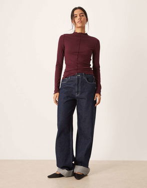 Libra High Neck Wool Rich Knit Top, Dark Red