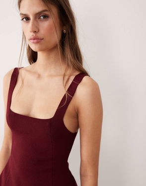 Cotton Mix Knitted Cap Sleeve Top In Red