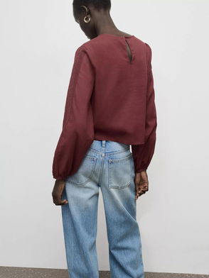 Gathered Neck Blouse In Dark Red