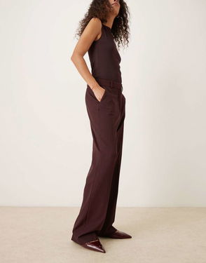 Pleat Front Tailored Trouser Co-ord In Dark Red