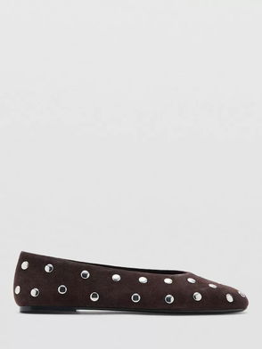 Savoir Suede Studded Ballerina Pumps, Dark Brown