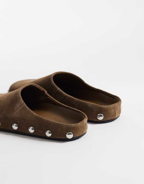 Leather Clogs With Silver Stud Detail In Mushroom