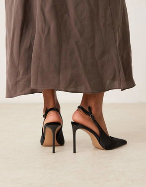 Faux Leather Ankle Tie Pointed Heeled Slingback In Cherry Red