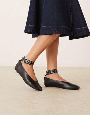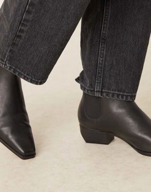 Leather Square Toe Low Heeled Ankle Boot In Black