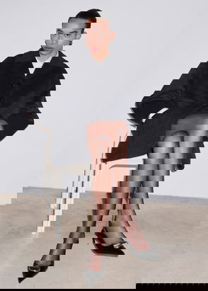 Featuring Kaia Gerber Leather Pointed Slingback Heel With Hardware Detail In Black