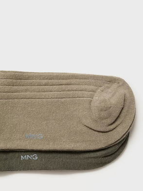 Birip Cotton Blend Ribbed Socks, Pack Of 2, Beige/Multi