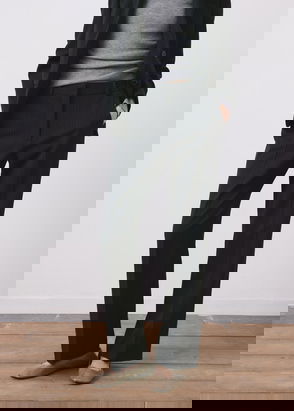 Straight Leg Pinstripe Trouser With Draw String Waist