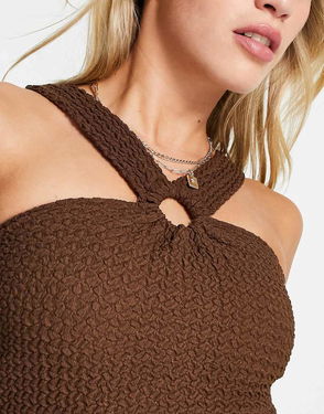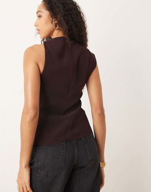 Asymmetric Sleeveless Top With Hardware Detail In Brown