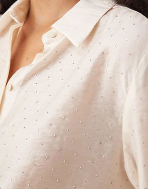 Asymmetric Sleeveless Top With Hardware Detail In Cream