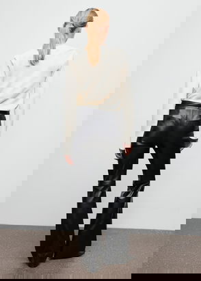 Wool Mix Boat Neck Asymmetric Hem Knitted Top In Grey